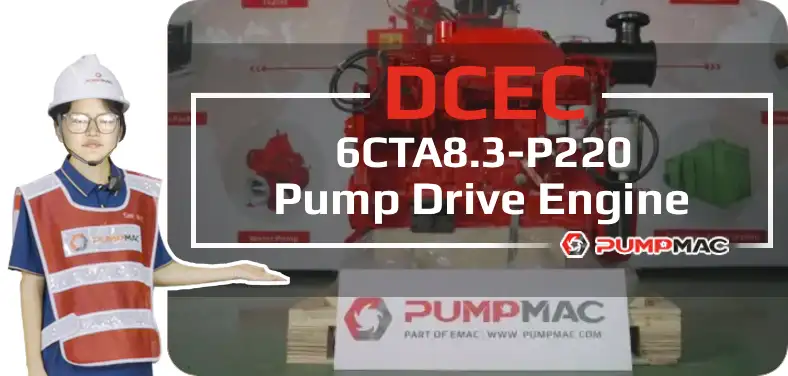 DCEC 6CTA8.3-P220 pump engine is a 6-cylinders in line, 8.3 liters four-strokes engine with 114 mm bore and 135 mm stroke.