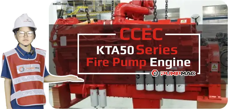 CCEC  K50 Series Fire-fighting Pump Engine is V type 16-cylinder, 50.3 liters four-strokes engine with 159 mm (6.25 in) bore and 159 mm (6.25 in) stroke. K50 Series Fire-fighting Pump equipped with CMS PT Fuel System, comes with turbocharger, and provide Low Temperature Aftercooled and Air-Air intercooler for customers to choose. The power range of CCEC K50 series Fire-fighting Pump is from 1645 HP to 2000 HP (1227 kW to 1491 kW). The torque range of the K50 Series Pump Drive Engine is 5544 N.m to 8790 N.m.