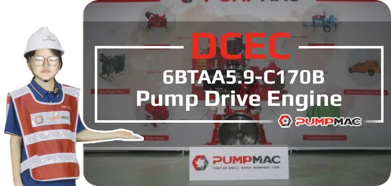 DCEC 6BTAA5.9-C170B-FP Fire Pump drive engine is a 6-cylinders in line, 5.9 liter four-strokes engine with 102 mm bore and 120 mm stroke. Equipped with BYC P7100 pump and RSV governor, engine comes with turbocharger and Air-Air Intercooler.