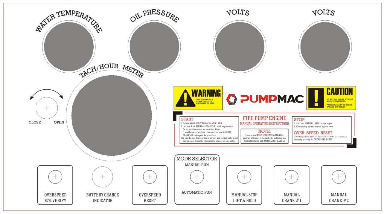 When the fire-fighting pump system need to work, the environment might have lot of smoke which make it difficult for rescue team to read anything, so NFPA20 standard have clearly requirement on the easy access of engine running information, including below items: (1) Water Temperature ; (2) Oil Pressure ; (3) Battery Volts (Two Sets) ; (4)Tacho Meter. According to NFPA20 standard, all the above information should be able to clearly read within 3 foot distance, so PumpMac developed our own A9: Fire Pump Engine Control Box, which have mechanical gauges for all above information, as well as integrated manual “CHECK 1” & “CHECK 2” starting system to control two sets of batteries.