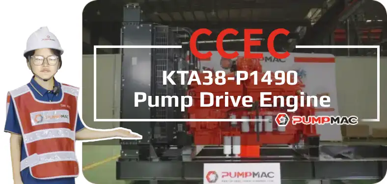 CCEC KTA38-P1490 (1800 RPM) Pump Drive Engine is V type 12-cylinder, 37.7 liters four-strokes engine with 159 mm (6.25 in) bore and 159 mm (6.25 in) stroke.