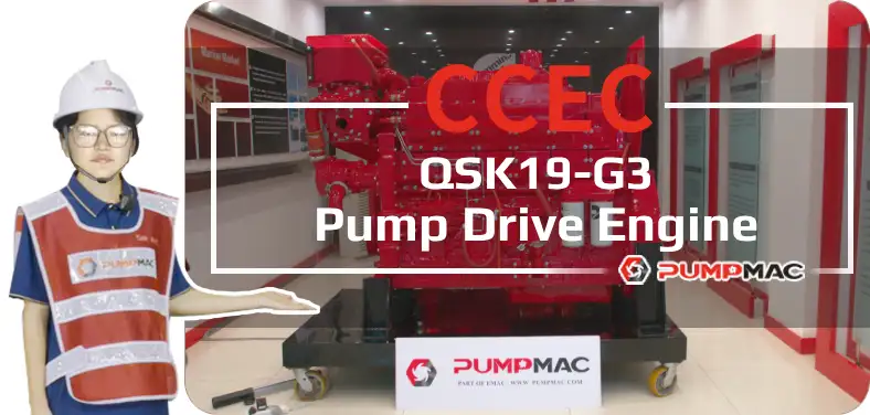CCEC QSK19-G3 (1800 RPM) Pump Engine is 6-cylinder inline, 19 liters four-strokes engine with 159 mm (6.25 in) bore and 159 mm (6.25 in) stroke.