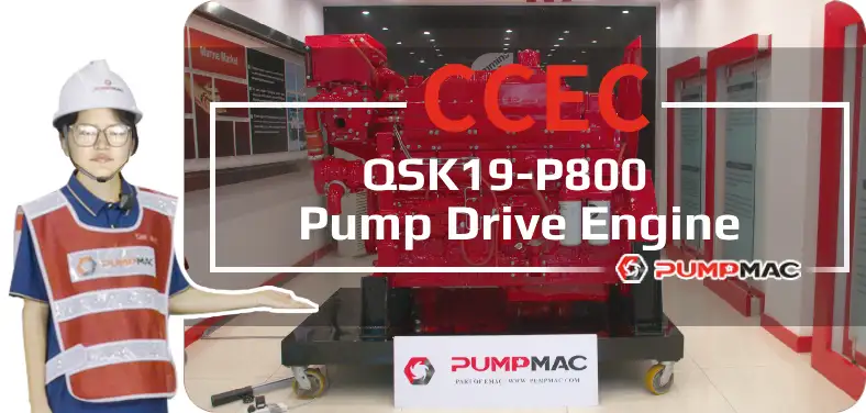 CCEC QSK19-P800(2100 RPM) Pump Engine is a 6-cylinder inline, 19 liters four-strokes engine with 159 mm (6.25 in) bore and 159 mm (6.25 in) stroke.