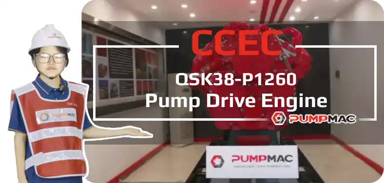 QSK38-P1260 Pump Engine equipped with CCEC Modular Common Rail Fuel System, comes with turbocharger and Water-Air intercooler, with a EURO II post-processor. The Advertised power at 1800 RPM of CCEC QSK38-P1260 Pump Engine is 1260 HP (940 kW). The maximum torque of the engine at 1400 RPM is 5496 N.m.